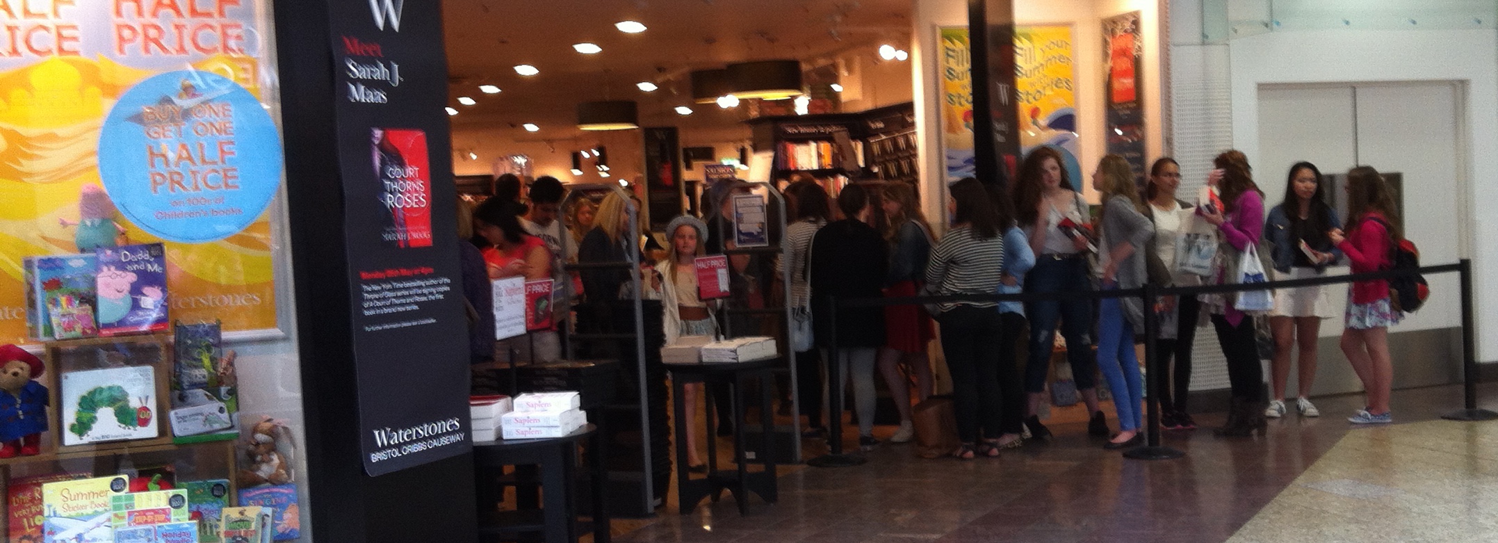 On Monday 25th May, Sarah J Maas was doing a book signing in a bookstore as close to us as possible, so we rounded up our best friend, and fellow ‘Throne of Glass’ lover, Sarah and jetted to Waterstone’s for the signing and release of ‘A Court of Thorns and Roses’.